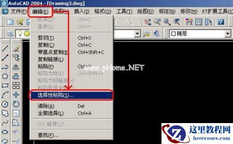 2、切换到CAD程序,然后选择“编辑”—“选择性粘贴”;
