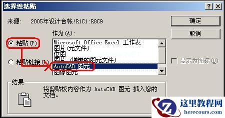 3、选择粘贴为“AutoCAD图元”,这样做的目的是粘贴后可以在CAD里编辑;