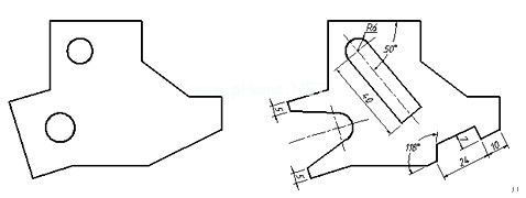 打开文件“1-15.dwg”,用XLINE、OFFSET及TRIM命令将图1-33中的左图修改为右图。这个练习的目的是使读者掌握画垂线及任意角度斜线的方法。