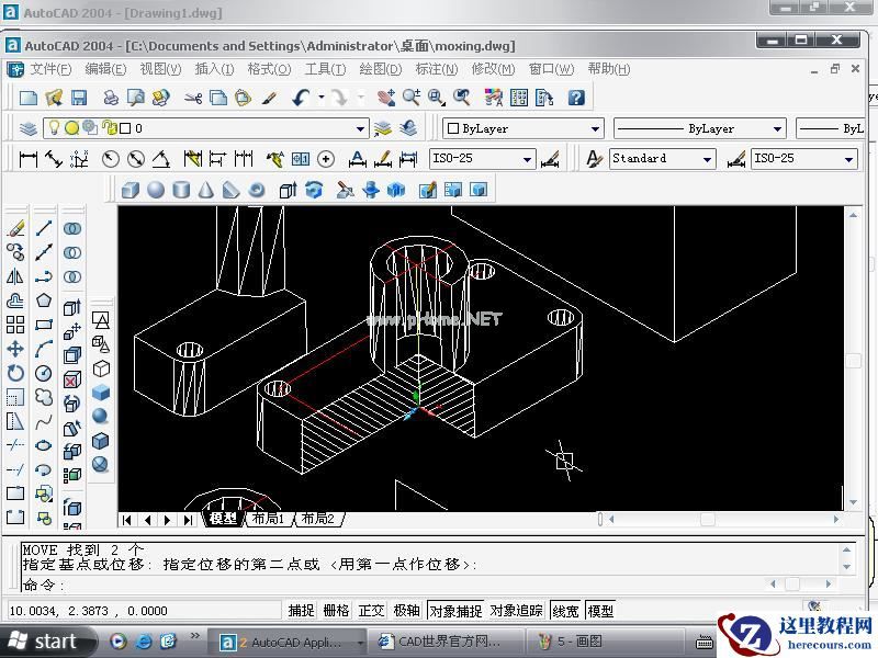 26-02-16CAD教程:三视图加一个模型的画法