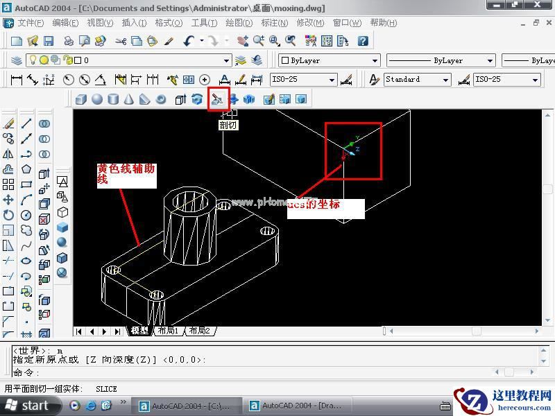 前日lljxls 兄发了几张其他软件所做模型的剖切图片.在cad如何做些剖切呢.今日写了一个教程,抛砖引玉,希望给大家点思路.随便做了一个模型,下面就来发张图片