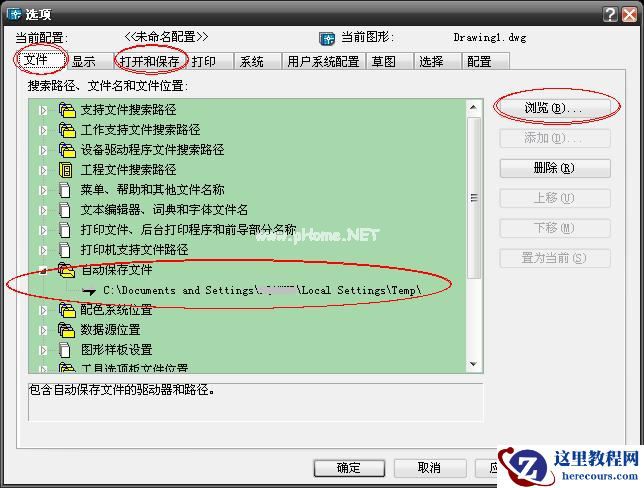 ____保存的位置在:菜单--工具-->选项-->文件-->自动保存文件,默认位置为“C:Documents and Settings*****Local SettingsTemp” ,命令为:savefilepath,其中“******”表示你的xp用户的名称。