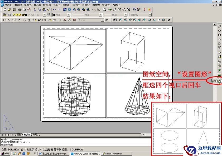 CAD轴测图制作小技巧—在一张图纸中用不同的比例打印多个图形方