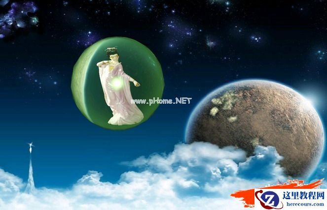 经过这样的构思,就制作成功一幅“嫦娥奔月”的图片了。