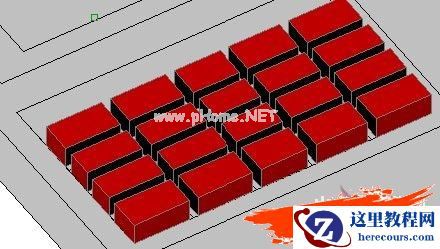 分别用拉伸命令Extrude上一步建立的分割面域和键盘(面域下面的矩形),为了方便观察和选定,分割面域(黑色部分)的拉伸距离应该大于键盘(红色部分)
