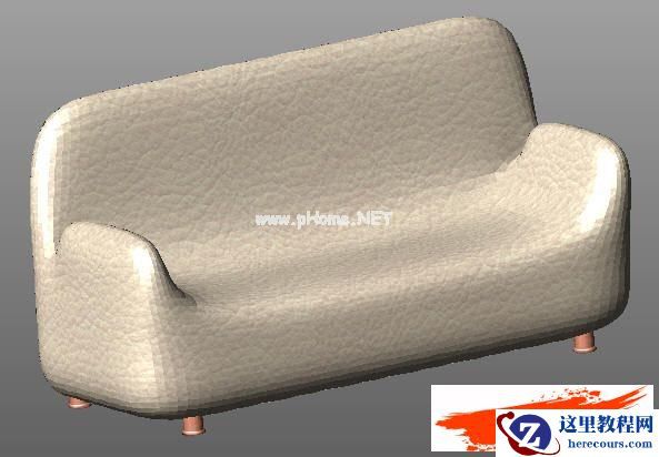 第六、加上沙发脚子,再经附上皮革材质,就成为多人沙发的成品了,(如图Snap10所示)。