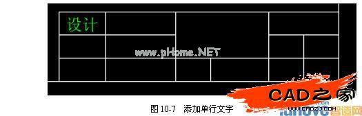(5)现在用另一种方法来创建文字。将图形中标题栏部分放大,选择菜单【Draw(绘图)】→【Text(文字)】→【SingleLineText(单行文字)】,并按提示进行如下操作: