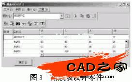 在零件设计时,如果某些零件结构一样,只是尺寸不同,那么这些零件就不必一一单个建立,可建立一个父零件,定义各个控制零件形状大小的参数,在设计时通过改变各个参数的值来得到所需要的衍生件,从而建立一系列的零件,这些零件组成的集合称为族表。由于标准件的结构形状和尺寸都已经标准化,故模具设计系统中的标准件库采用族表技术开发,从而方便快捷地达到设计目的,图3 为利用族表设计零件的界面。在建立父零件时应注意以下2 个问题: