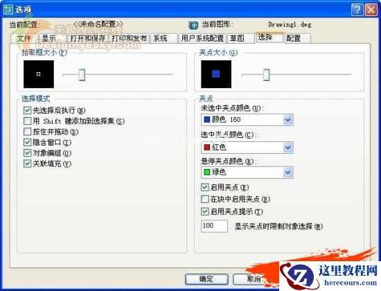 我们也可以通过系统设置让添加选择集的操作更加方便——鼠标点击工具菜单、选项,打开选项中的选择配置如图: