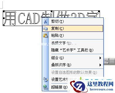 4、选定你制作的艺术字,鼠标右击,选择“复制”。如下图4所示。