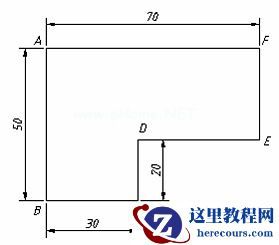 8) 将鼠标向左移动并输入线段FA的长度70,完成图形的绘制。