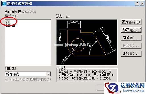 14,OK,符合国标的尺寸标主样式设置完毕,将gb样式置为当前样式即大功告成。