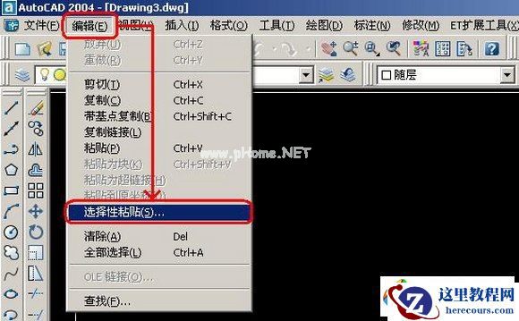 2、切换到CAD程序,然后选择“编辑”—“选择性粘贴”;