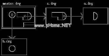 在以下插图中,图形 master.dwg 参照图形 a.dwg 和图形 b.dwg。图形 a.dwg 参照图形 c.dwg。在图形 master.dwg 中,图形 c.dwg 是嵌套的外部参照。