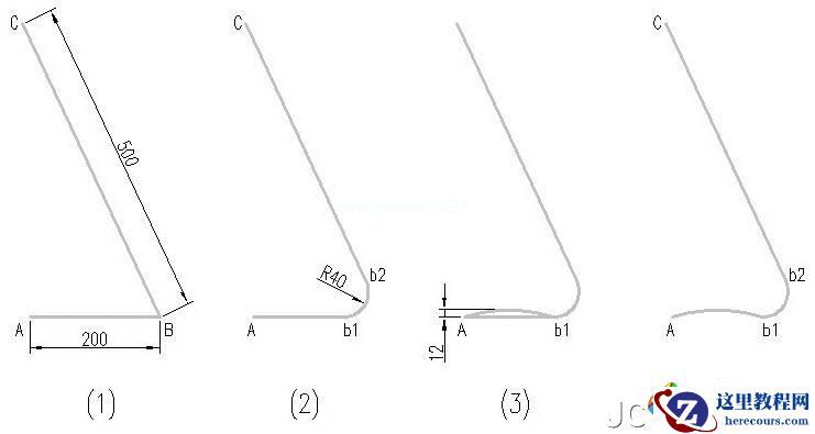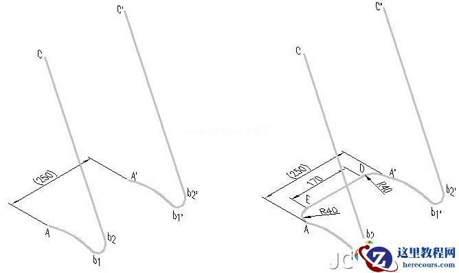 (3)在A和b1点两点之间作一圆弧,圆弧高度可如图所示。