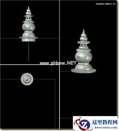 2、在葫芦形的香炉脚水面处画一个面域,用做水中倒影的图板。