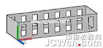 1、先用多段线画出这幢楼房的底层外墙的轴线,接着用“曲面拉伸”工具(注意:不是实体的“拉伸”命令),创建出底层的外壳,如图-1所示。
