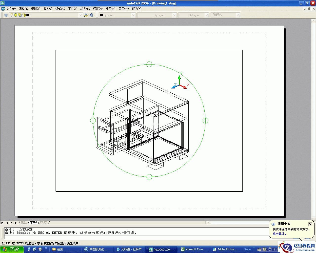 你看,3dorbit命令之后的效果
