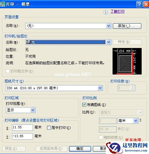 1、画好图形后,点“打印”按钮,弹出“打印-模型”对话框,如下图:
