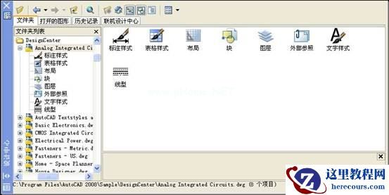 设计中心的左侧是树形的文件夹列表,和资源管理器一样,可以很方便地找到需要的图纸文件。