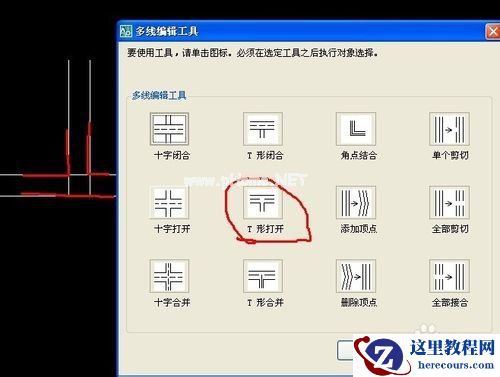 3 如果遇到这类图形,想将图形结合起来,可以双击多线图形出现对话框,也可以输入mledit回车,出现对话框