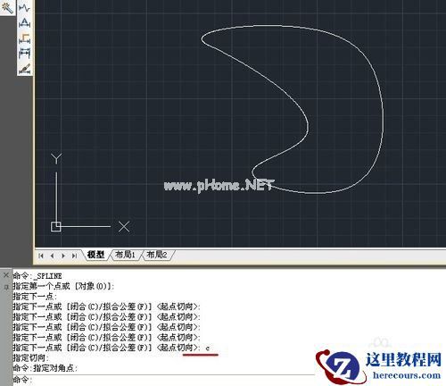 如果想绘制闭合的样条曲线,步骤:点击样条曲线命令,鼠标在绘图区点击绘制样条曲线,这时输入C回车,再回车一次就可以了