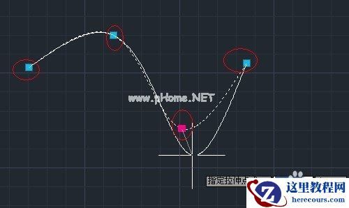 点击命令后,在图上点击一点,再移动鼠标再另外一处点击,如果需要几个点控制线的形状,那就点击几个点,最后三次连续按空格键确认样条曲线形状并退出命令。如果中途不想绘制了可以按ESC键退出命令。如果想改变这条线的形状,可以点击线条,出现夹点,鼠标点击夹点拖动夹点来控制线条的形状。