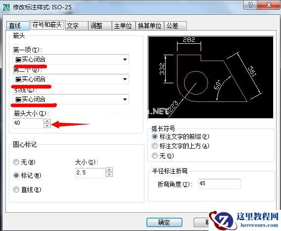符号和剪头主要设置参数: