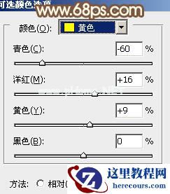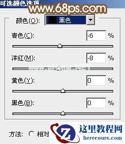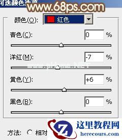 2、创建可选颜色调整图层,对红、黄、绿、白、中性、黑进行调整,参数设置如图3 - 8,效果如图9。这一步主要把草地颜色转为橙黄色。