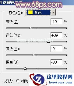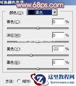 1、打开素材图片,创建可选颜色调整图层,对黄、绿、黑进行调整,参数设置如图1 - 3,效果如图4。这一步把背景主色转为黄褐色。