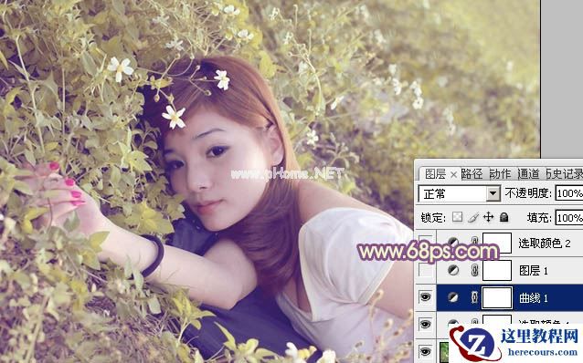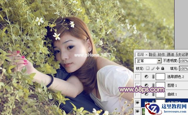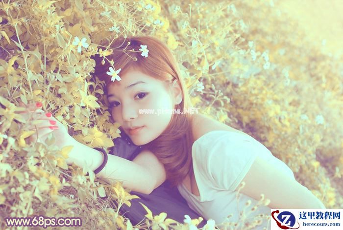 素材图片完全是在草地上拍摄的,主色以草地绿色为主,转为暖色是非常简单的。可以直接用调色工具把图片颜色调成暖色,再加强高光及暗部颜色即可。