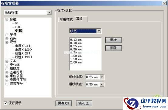 选中“企标”,点击显示区的“常规”选项卡,设置该标准的一些基本参数:线宽系列值和文本高度系列值。设置完成后,在这个标准下,设定线宽以及设置字体样式时只能从这个系列中选择,从而达到标准化的效果。