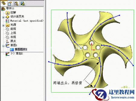 3,绘制样条曲线时,为了更好的控制曲线走向 在两个端点处留出足够多的延伸段,然后再修剪掉