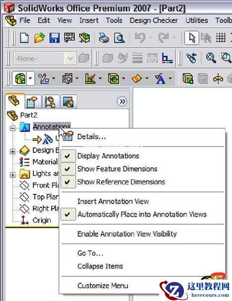 To add additional annotations, select a tool from the Annotation toolbar. Select a face and place the annotation (such as a datum features or surface finish symbols). The annotations are added to the appropriate annotation view.