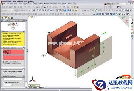 If you want to change an annotation to display in another view, you can change each annotation separately or move them all at once. To move several annotations at the same time, right-click on the annotation view in the FeatureManager design tree and select Edit Annotation View. The Move to Annotation View property manager displays, and you can select multiple annotations to move into the view.