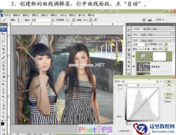 2、创建曲线调整图层,打开面板后点右边的自动按钮,然后确认,效果如下图。