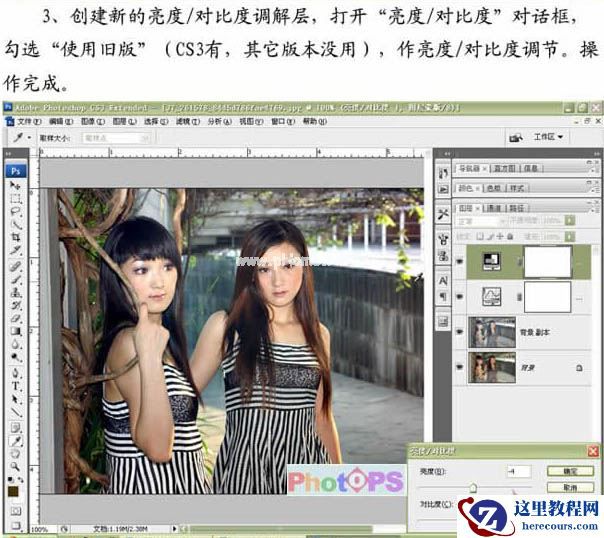 3、创建亮度/对比度调整图层,参数设置如下图,可以根据图片明暗适度把握数值,如下图。