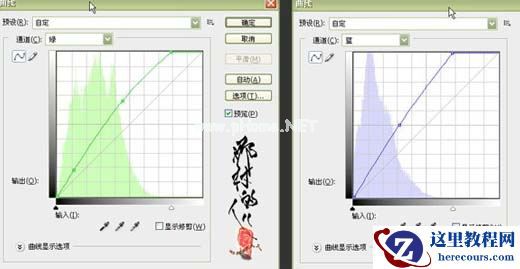 3、创建曲线调整图层,对个通道进行调整,参数及效果如下图。