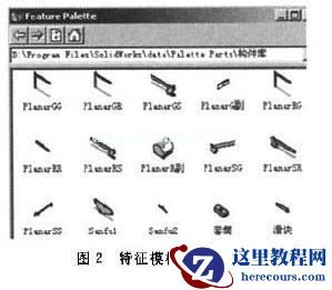 为了实现构件的快速建模和避免重复性工作,建立了一些常用构件的三维参数化模板库.用户可以在特征模板中查询和调用各种构件模型(如图2).构件建模时应充分利用SolidWorks提供的16种几何约束关系,以得到各种特征之间的几何约束关系.