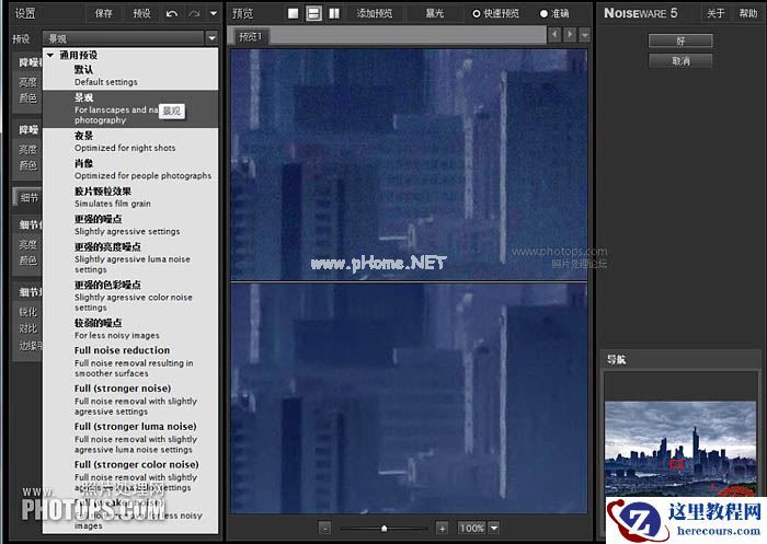 11、运用滤镜中降噪软件,对画面实施降噪,选择景观,程序细节部分自己调整。