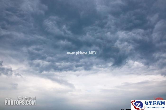 6、如果觉得天空没有云彩,可以从图库中挑选一张有乌云的图片。