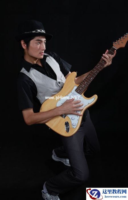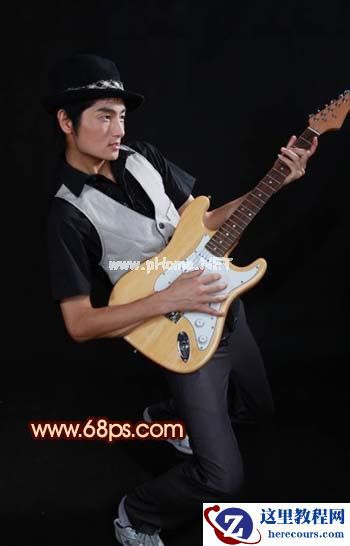 原图素材的背景为纯黑色,为了突出人物部分。可以把人物适当的调亮,对比度加大。这样有种舞台灯光效果的感觉。