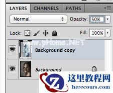 6、保持透明度50%,复制图层(CTRL+ALT+SHIFT+E / CMD+OPTION+SHIFT+E),删除掉中间的图层。