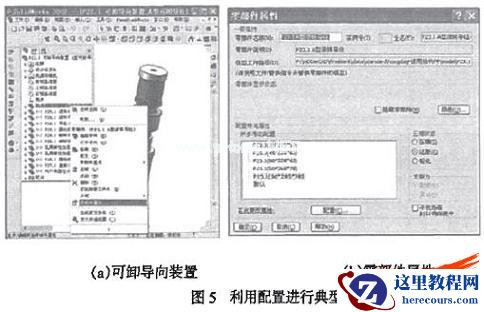 (4)在完成的装配体中,针对每一组成零件,右键单击构成零件名称后点取"零部件属性"。如图5所示,更改为需要的配置,对每-构成零件重复该步骤,直到按要求更改好所有零件配置。