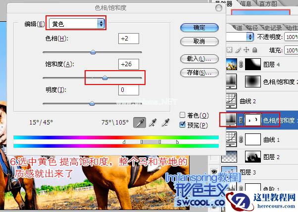 本教程的色调非常特别,有点类似HDR效果。大致过程:先简单的把图片的对比度加大一点,然后用色相/饱和度分别加大画面中各色的饱和度。最后再处理一下背景并加上暗角即可。