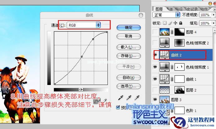 8、创建曲线调整图层,对RGB进行调整,提高整体亮部及对比度。