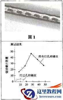 防锡爆锡丝打孔机是在送锡的同时,经过精密加工的刀状齿轮在焊锡丝表面(由表面向中心)打出一排连续、均匀的孔(如图1)。在焊接时,受热沸腾的助焊剂从孔中溢出,有效防止了助焊剂飞溅,从而大幅度的降低了"爆锡球"(如图2)的现象。更由于助焊剂的溢出,使焊锡本身的润湿性得到明显的改善,增强焊料的可焊性及流动性,有效地解决虚焊等问题,焊点也显得圆润光滑。