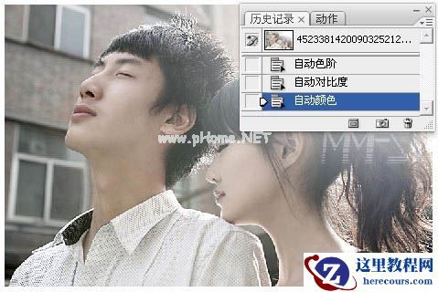 原图素材看上去反白的部分过多,人物部分不太清晰。处理的时候作者用自动色阶等操作把图片的亮度降低。这样照片会清晰很多,然后再适当调整颜色和对比度,清晰的照片就会完美的显现出来。