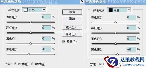 3、建立可选颜色调整层,分别调整红色、黄色、青色、白色、中性灰,黑色,参数及效果如下图: