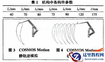 为了便于分析,栽植机构的构件尺寸参数如表to假设栽植机前进速度为v=150mm/s,运动时间t=2s.
